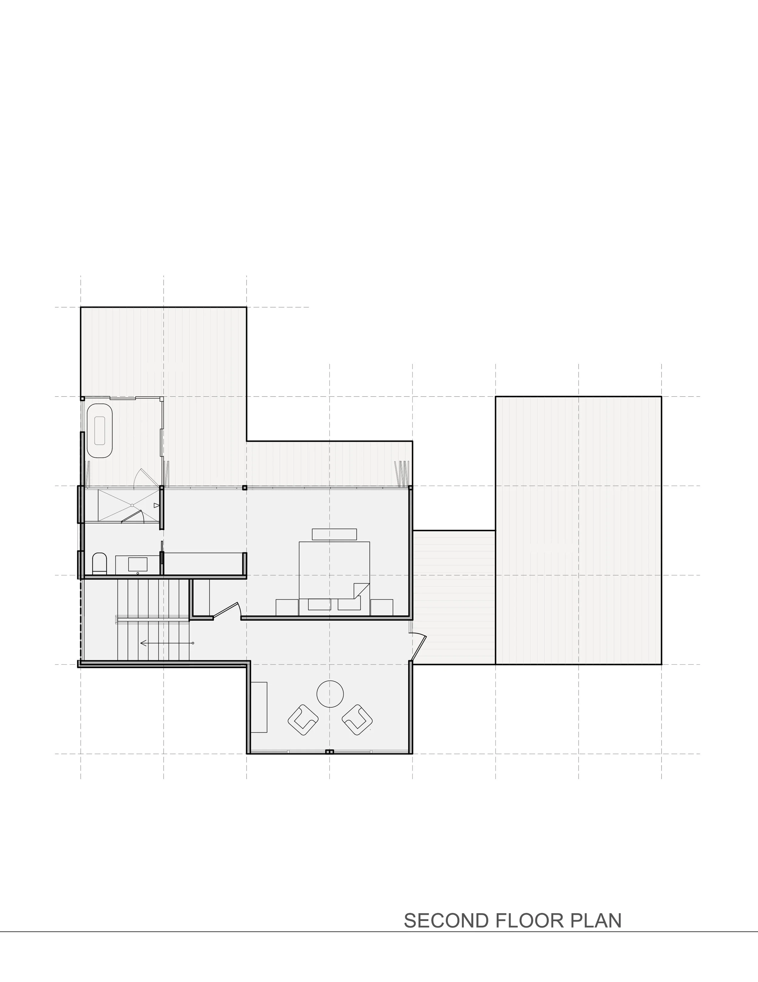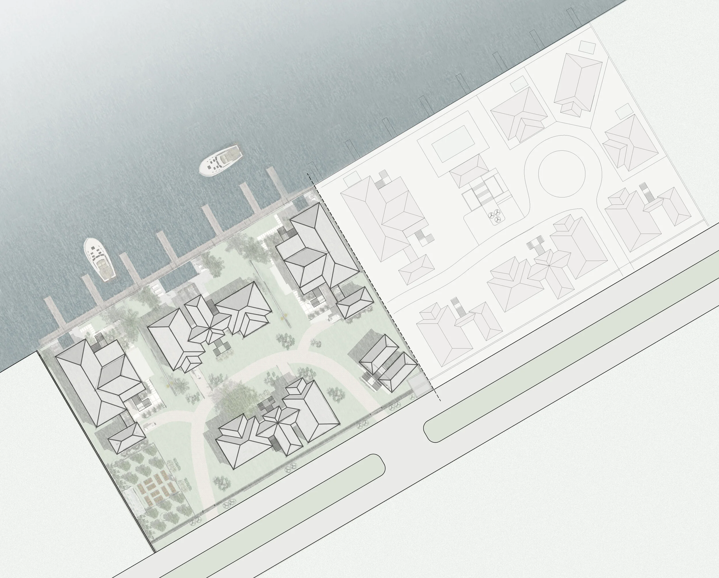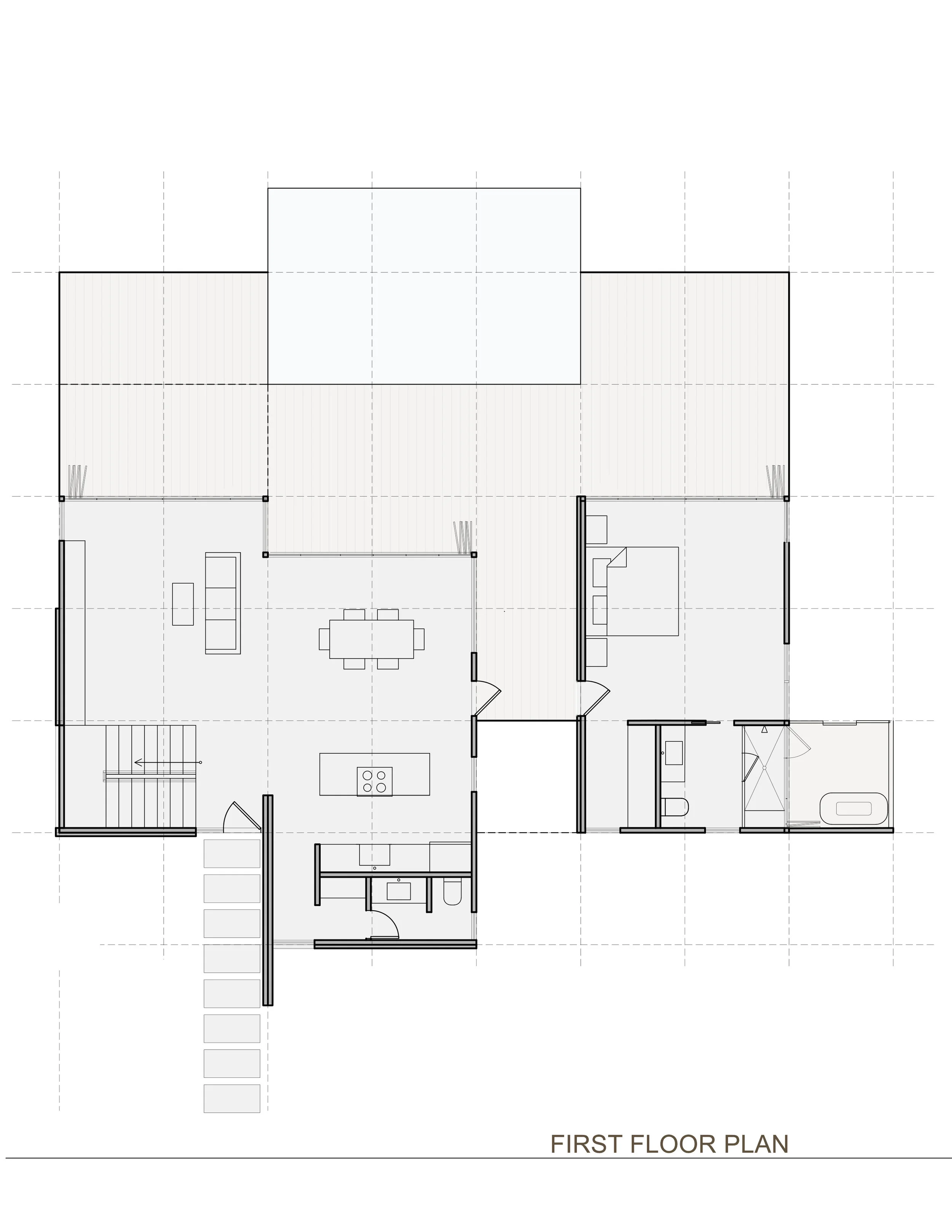 A floorplan to suit long and narrow lots, for instance to upgrade former trailer-sized lots in the Florida Keys.