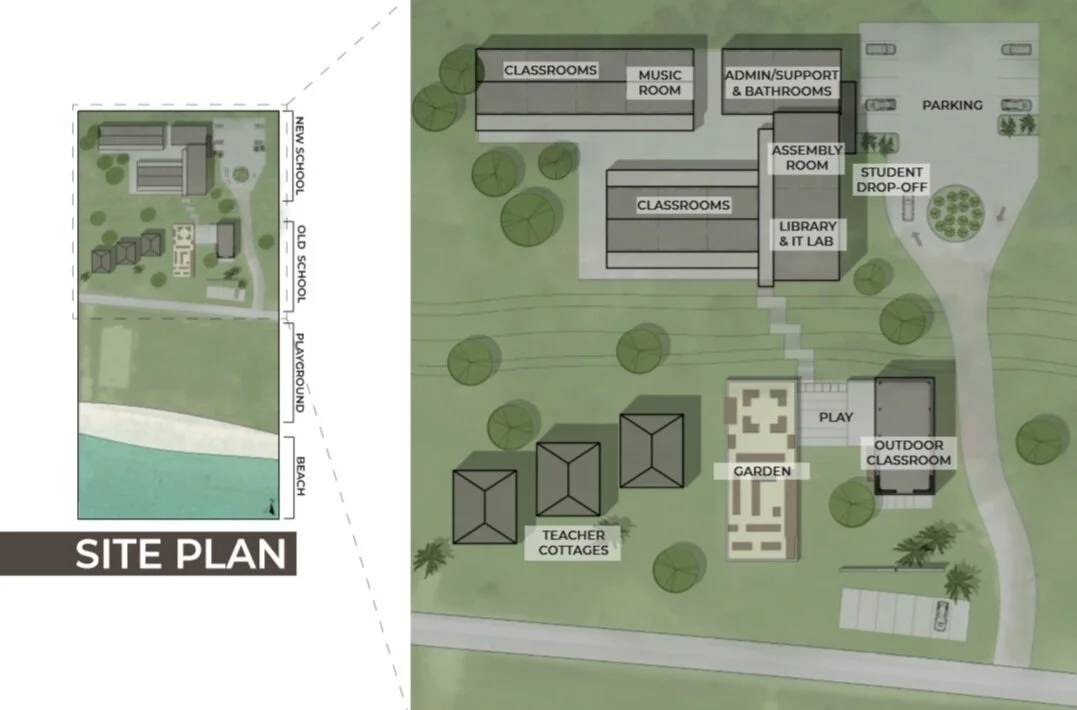 A school is essential in every community. Our concept is to have a school as a nucleus for sustainable, resilient communities where old and young can learn useful skills from each other, such as local food production or where new technology can replace inefficient practices. The school can also serve as a library and for courses in various subjects such as art, marine life, tropical plants and other subjects where there is a special knowledge in the community which can be passed on.