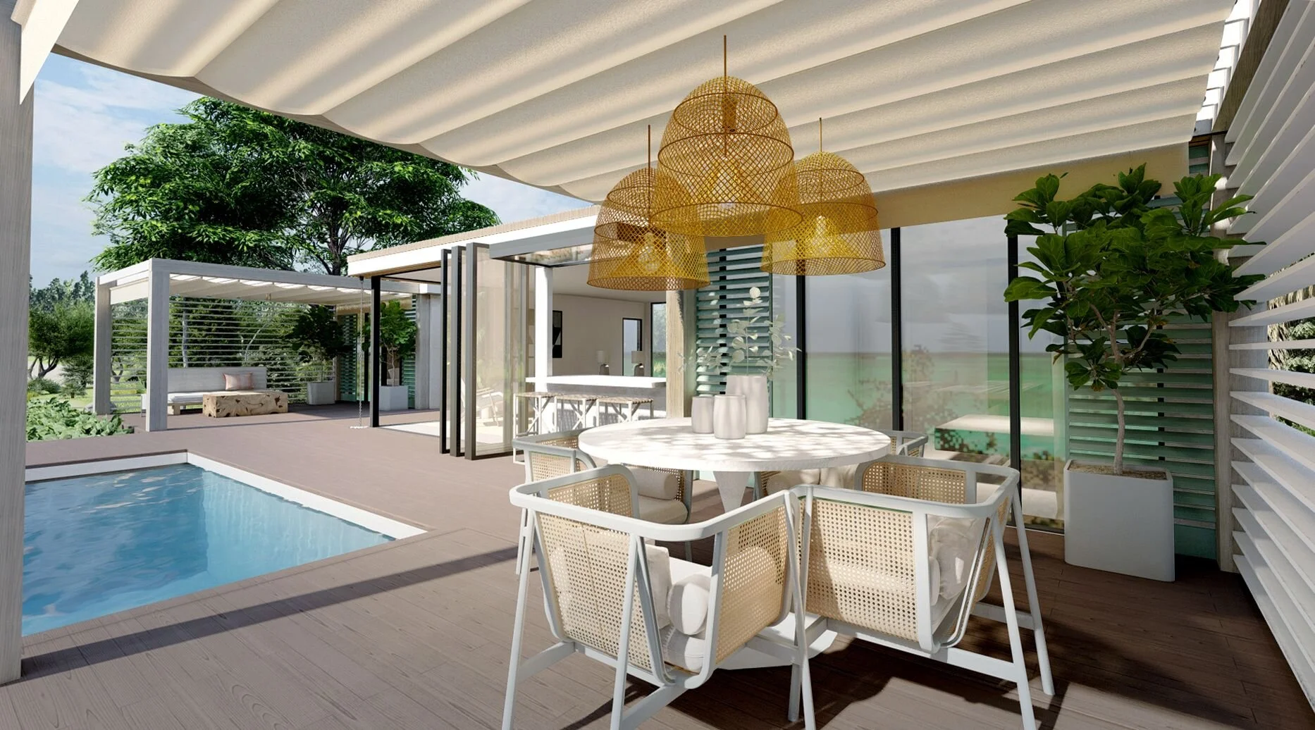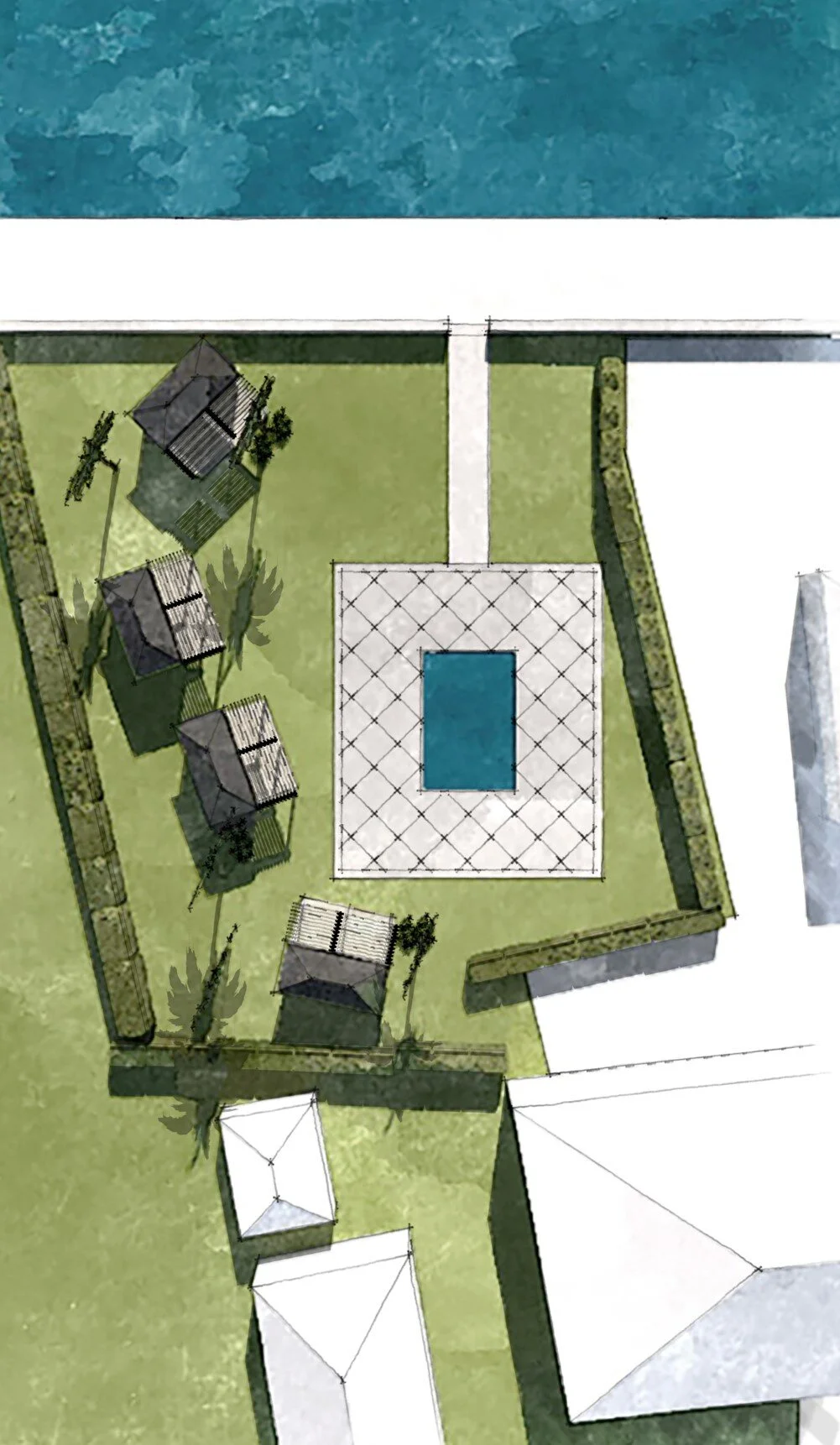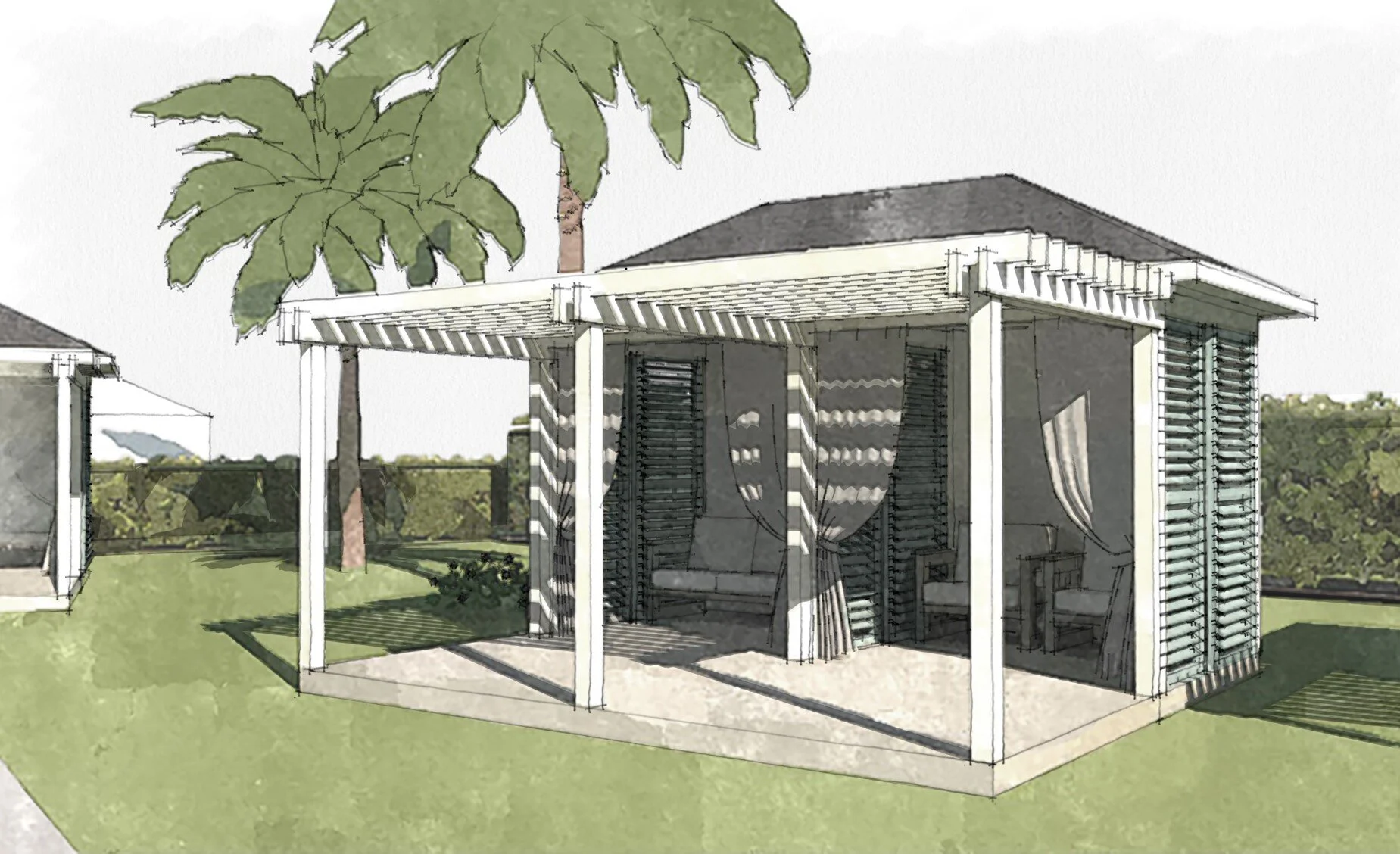 A cabana at the end of the garden or by the pool for changing, resting or entertaining. These can also be used for beauty treatments at a beach club, for example.
