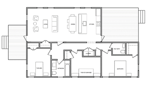 4 Bedrooms, 2 Bathrooms, 1 outdoor shower, outdoor storage, 1890 Sq. Ft. / 31.5 Modules.